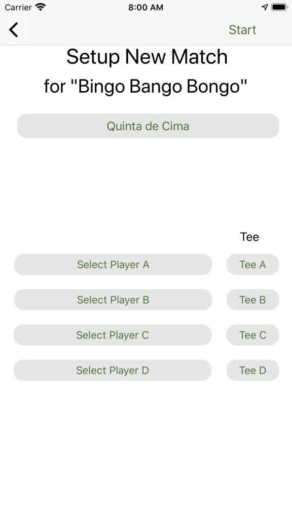 Bingo: Der Spieler der seinen Ball als erster auf dem Grün platziert erhält einen Punkt. (Da bei einem Par 3 derjenige, der als erster abschlägt einen unfairen Vorteil hat, gibt es bei den Par-3 Löchern keinen Bingo-Punkt)