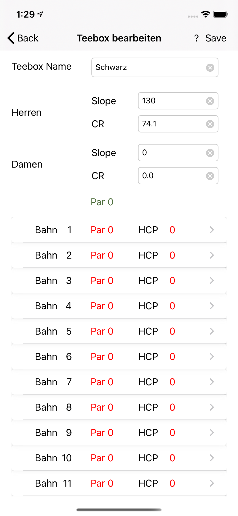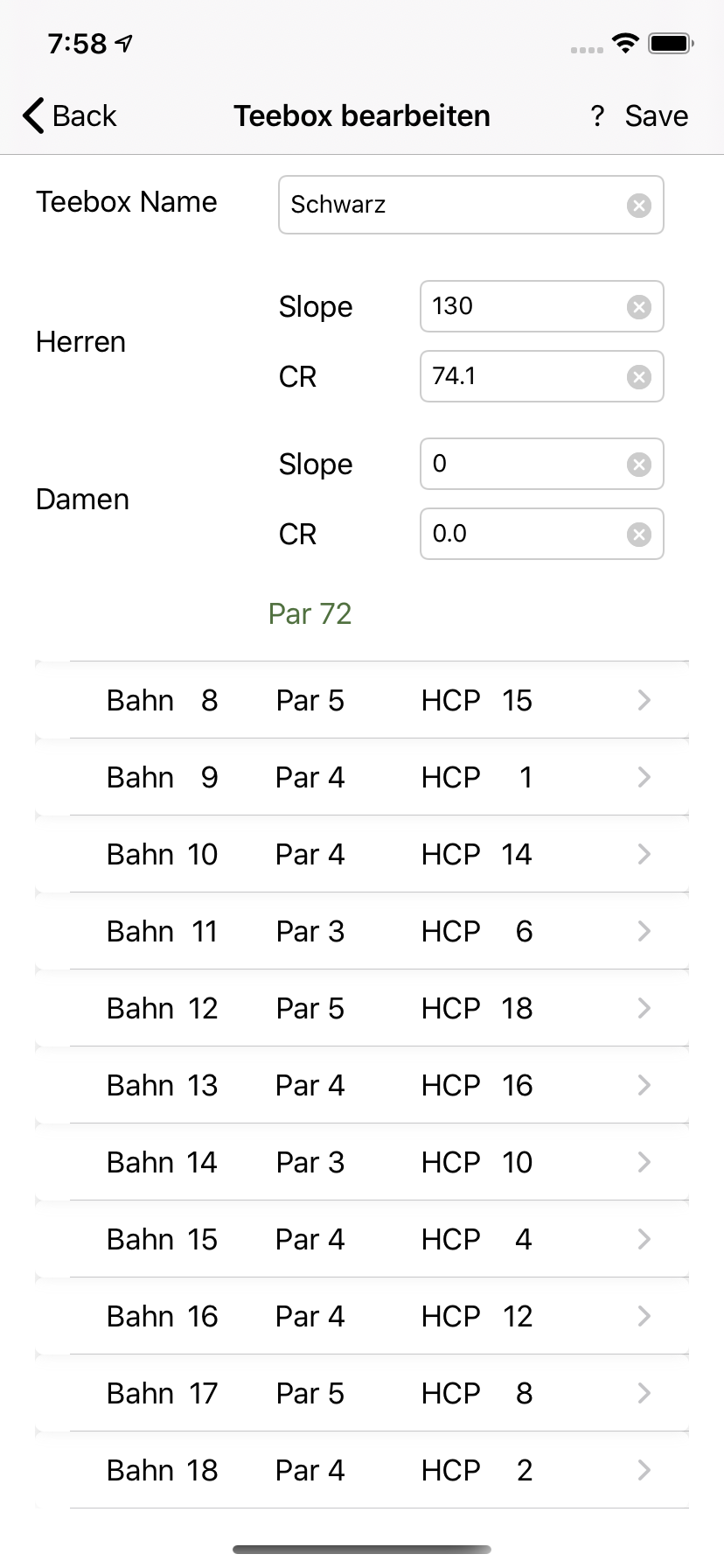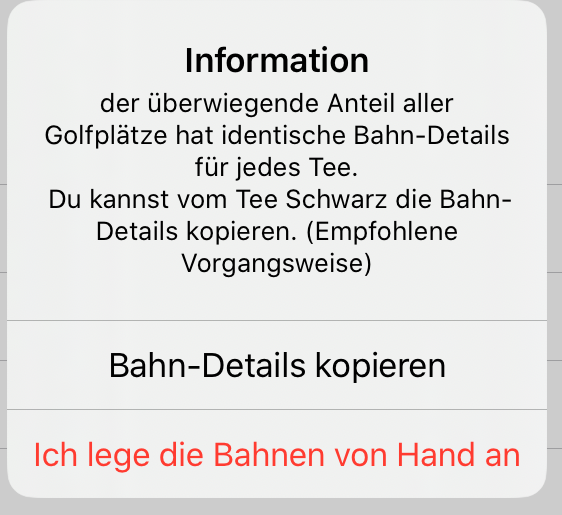 Es gibt Plätze, bei denen das Par an einigen Bahnen für die Damenabschläge abweicht. Auch in diesem Fall kannst Du kopieren und dann lediglich diese Bahnen ändern, das geht schneller als alles von Hand anzulegen.