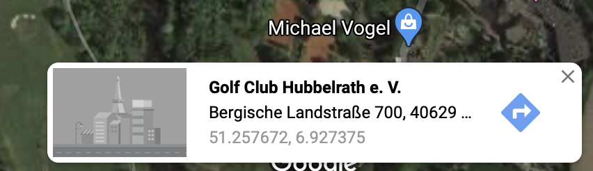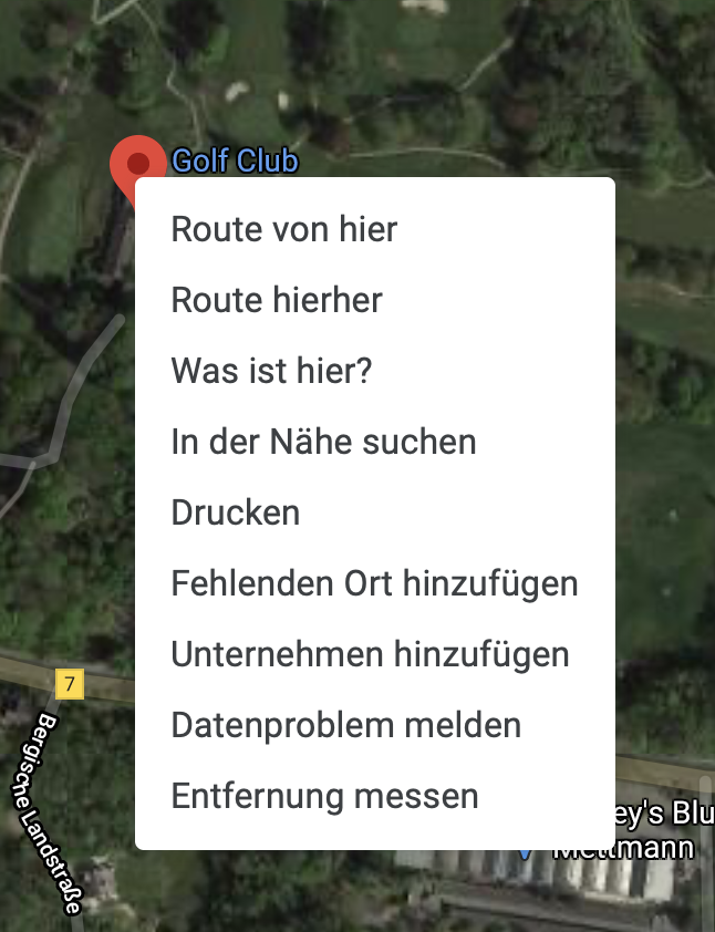 Suche in Google Maps den Golfplatz und tippe mit der rechten Maustaste auf das rote Standortsymbol. In dem Kontextmenü klickst Du auf "Was ist hier?"