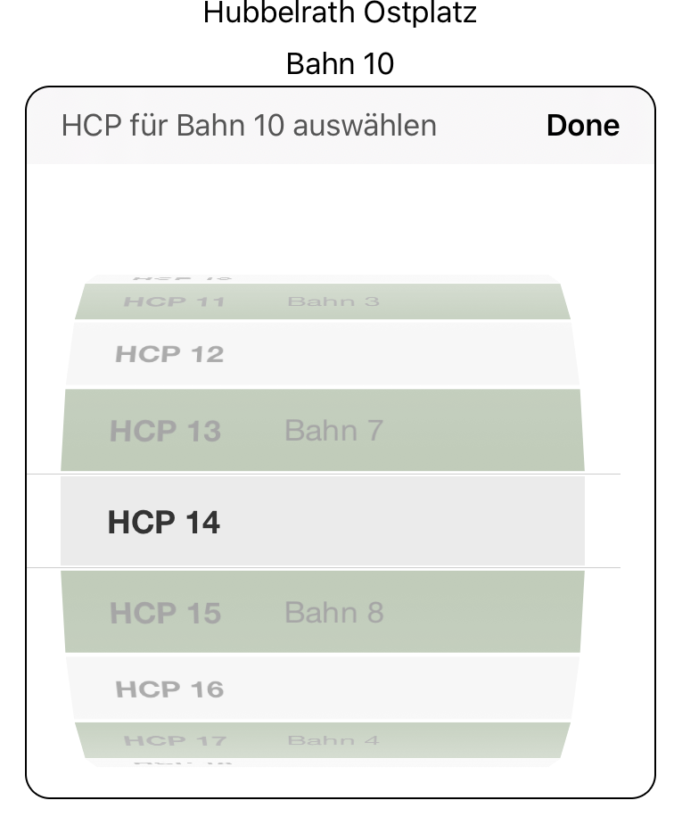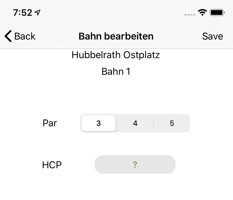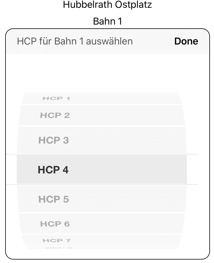 Als nächstes tippe auf das "?" neben HCP. Hier stellst Du den Schwierigkeitsgrad (von 1 bis 18) der Bahn ein.