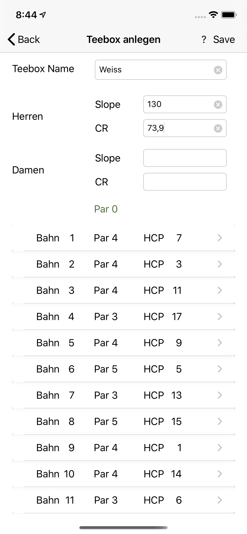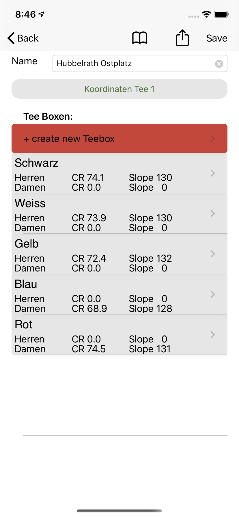 Es muss nur noch die Bezeichnung für die Teebox sowie Slope und CR eingegeben werden.